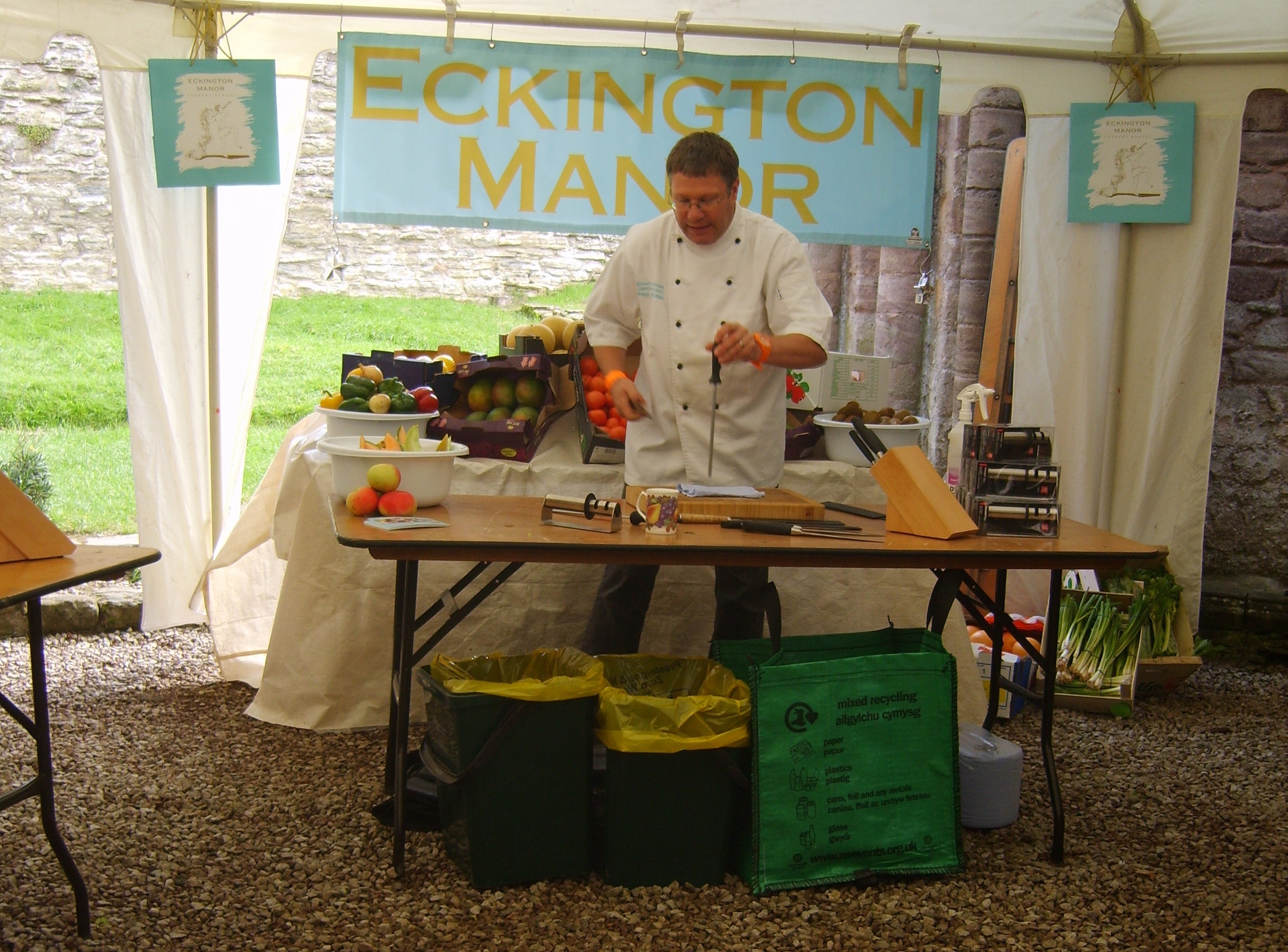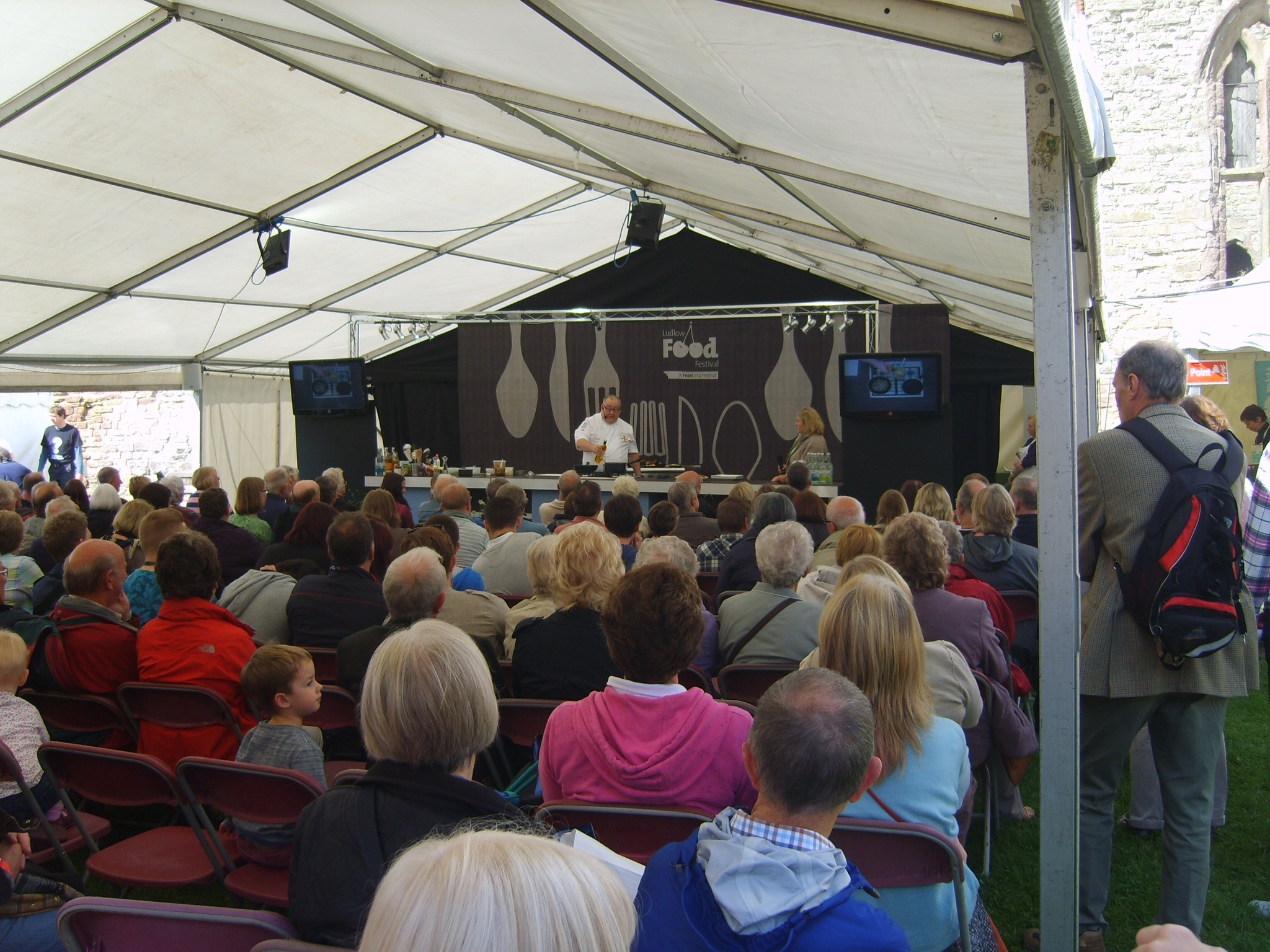 myself doing everything from setting up an endless amount of chairs, to assisting the lovely ladies behind the scenes on the Demonstration Stage, to helping with the fabulously fun and interesting Cooking-Like-Cleopatra MasterClass, to just wandering the stall marquee and grounds providing information and direction to the visitors. Beth, Phil and Vince of the Ludlow Food Festival Organizational Team made my time as a volunteer (and im sure all of the volunteer’s would agree) such a pleasure! The committee made sure to rotate schedules so that the volunteers had a great perspective and interesting day. They accommodated for needs and interest if necessary and they fed us all like kings and queens with a magnificent lunch buffet each day as well as tea with heavenly cakes provided throughout. The festival is a well oiled machine with so many aspects and individuals involved in making it happen that somehow comes together each year beautifully and seemingly flawless. There are many (in fact hundreds) of food festivals in England now, but you MUST plan your trip to England in September with a visit to the Ludlow Food Festival, come hungry for both food and fun and I guarantee you will satisfied beyond belief!