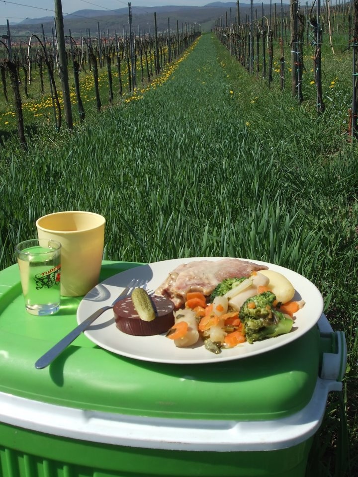 Long days of planting grapevine starts and trimming vines became more than just an interesting and educational experience when being treated on Sundays to sunny lunches of Flammekueche from the wood fired oven inside the vintner’s ancient courtyard with his lovely family.