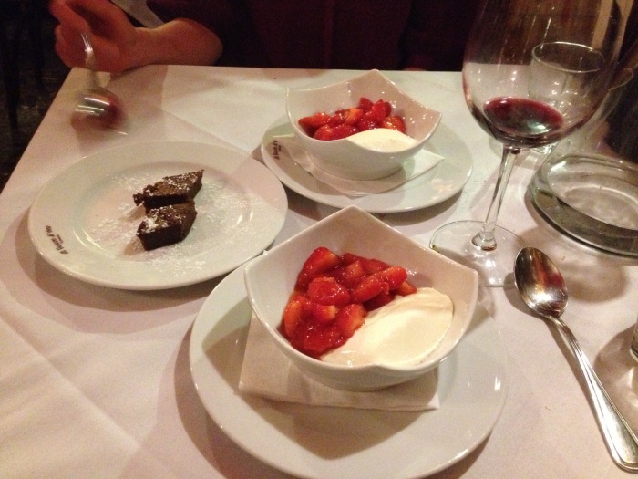 The “no menu” concept might be wary to some but I can guarantee you will not be disappointed! Greeted with a simple wine choice of red or white AND a glass of Preseco, it was three hours of anything but simple and what seemed like an endless parade of dishes: antipasto to tempt every edge of the palette, imported Italian cheeses and peppered the carpaccio, fresh prawns and scallops swimming in butter herbs and white wine, the most amazing house made pasta, rich delectable porcini risotto, and a divine sizzling lamb joint w/ potatoes properly paraded by the staff through the room before being devoured by the already stuffed diners. And OH the desserts!!! (With Grappa & expresso)